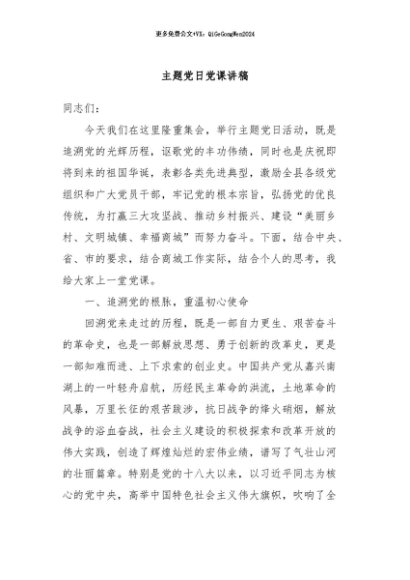 / 【七哥公文】2024年:主题党日党课讲稿+更多免费公文+VX:QiGeGongWen2024