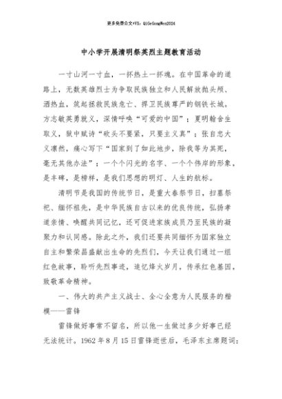 【七哥公文】2024年:中小学开展清明祭英烈主题教育活动+更多免费公文+VX:QiGeGongWen2024