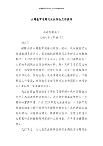 / 【七哥公文】2024年:主题教育专题民主生活会点评提纲.+更多免费公文+VX:QiGeGongWen2024