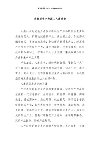 【七哥公文】2024年:为新质生产力注入人才动能+更多免费公文+VX:QiGeGongWen2024