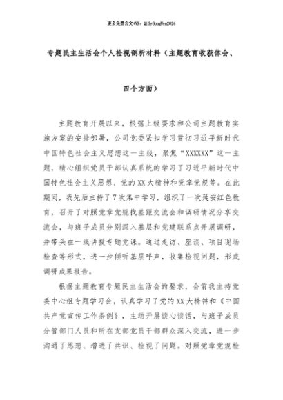 【七哥公文】2024年:专题民主生活会个人检视剖析材料(主题教育收获体会、四个方面)+更多免费公文+VX:QiGeGongWen2024