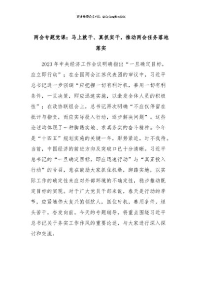 【七哥公文】2024年:两会专题党课:马上就干、真抓实干,推动两会任务落地落实+更多免费公文+VX:QiGeGongWen2024