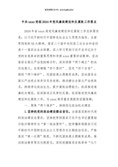 【七哥公文】2024年:中共xxxx党组2024年党风廉政建设和反腐败工作要点+更多免费公文+VX:QiGeGongWen2024