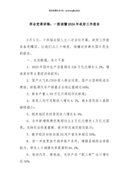 【七哥公文】2024年:两会党课讲稿:一图读懂2024年政府工作报告+更多免费公文+VX:QiGeGongWen2024
