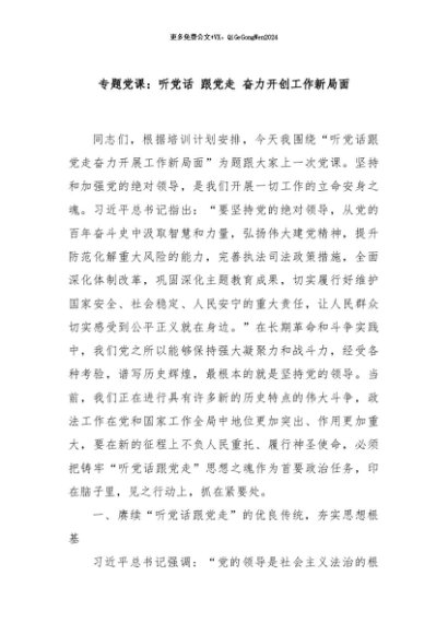 / 【七哥公文】2024年:专题党课:听党话 跟党走 奋力开创工作新局面+更多免费公文+VX:QiGeGongWen2024