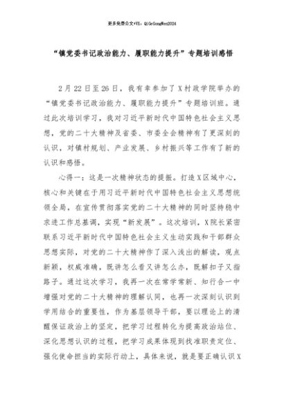 / 【七哥公文】2024年:“镇党委书记政治能力、履职能力提升”专题培训感悟+更多免费公文+VX:QiGeGongWen2024