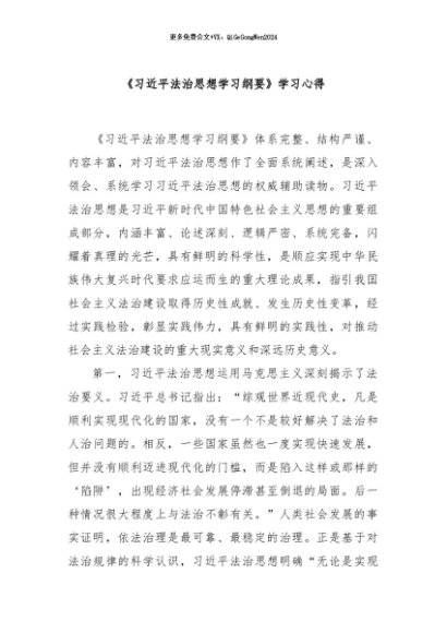 / 【七哥公文】2024年:《习近平法治思想学习纲要》学习心得+更多免费公文+VX:QiGeGongWen2024