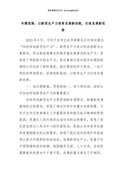 【七哥公文】2024年:专题党课:以新质生产力培育发展新动能,打造发展新优势+更多免费公文+VX:QiGeGongWen2024