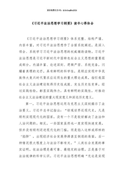 / 【七哥公文】2024年:《习近平法治思想学习纲要》读书心得体会+更多免费公文+VX:QiGeGongWen2024