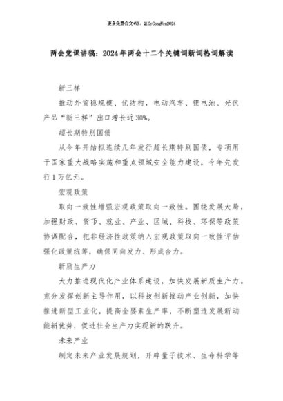 【七哥公文】2024年:两会党课讲稿:2024年两会十二个关键词新词热词解读+更多免费公文+VX:QiGeGongWen2024