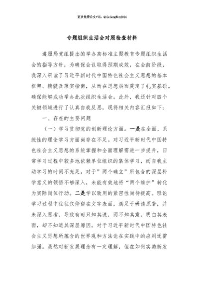 / 【七哥公文】2024年:专题组织生活会对照检查材料2+更多免费公文+VX:QiGeGongWen2024