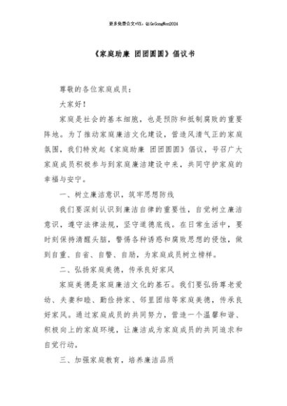 / 【七哥公文】2024年:《家庭助廉 团团圆圆》倡议书+更多免费公文+VX:QiGeGongWen2024