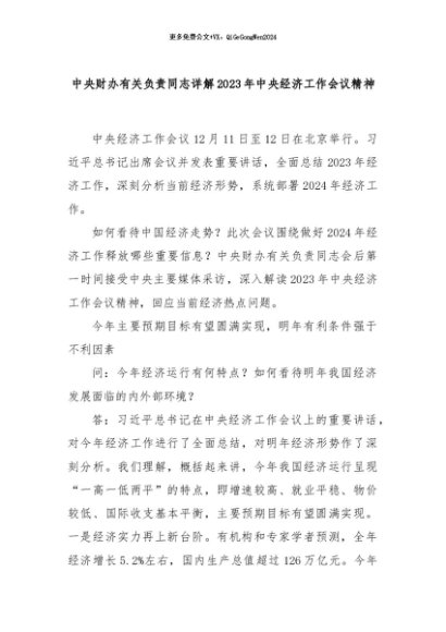 【七哥公文】2024年:中央财办有关负责同志详解2023年中央经济工作会议精神+更多免费公文+VX:QiGeGongWen2024