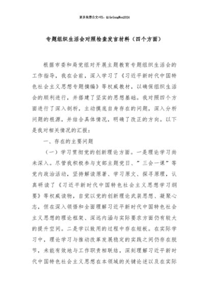/ 【七哥公文】2024年:专题组织生活会对照检查发言材料(四个方面)+更多免费公文+VX:QiGeGongWen2024
