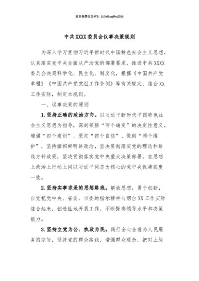 / 【七哥公文】2024年:中共XXXX委员会议事决策规则+更多免费公文+VX:QiGeGongWen2024
