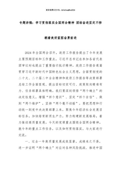 【七哥公文】2024年:专题讲稿:学习贯彻落实全国两会精神 团结奋进坚定不移朝着美好蓝图奋勇前进+更多免费公文+VX:QiGeGongWen2024