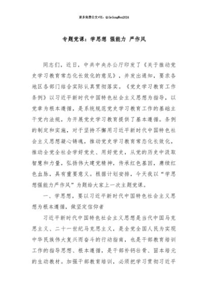 / 【七哥公文】2024年:专题党课:学思想 强能力 严作风+更多免费公文+VX:QiGeGongWen2024