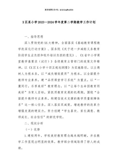 【七哥公文】2024年:X区某小学2023-2024学年度第二学期教学工作计划+更多免费公文+VX:QiGeGongWen2024
