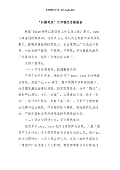 / 【七哥公文】2024年:“以案促改”工作情况总结报告+更多免费公文+VX:QiGeGongWen2024