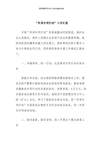 / 【七哥公文】2024年:“双周专项行动”工作汇报+更多免费公文+VX:QiGeGongWen2024