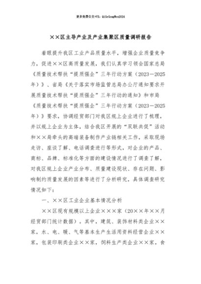 / 【七哥公文】2024年:××区主导产业及产业集聚区质量调研报告+更多免费公文+VX:QiGeGongWen2024