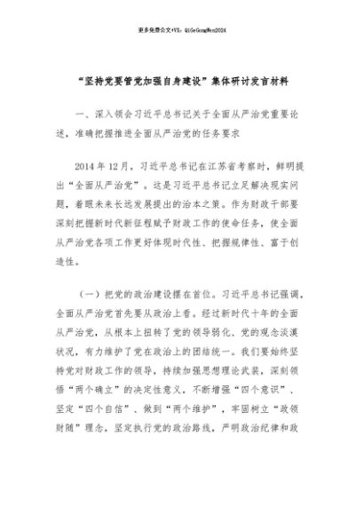 / 【七哥公文】2024年:“坚持党要管党加强自身建设”集体研讨发言材料+更多免费公文+VX:QiGeGongWen2024