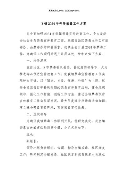 / 【七哥公文】2024年:X镇2024年开展禁毒工作方案+更多免费公文+VX:QiGeGongWen2024