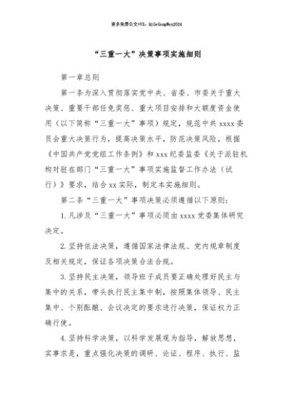 【七哥公文】2024年:“三重一大”决策事项实施细则+更多免费公文+VX:QiGeGongWen2024