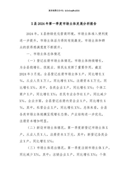 【七哥公文】2024年:X县2024年第一季度市场主体发展分析报告+更多免费公文+VX:QiGeGongWen2024