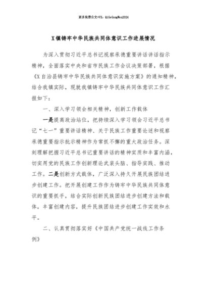 / 【七哥公文】2024年:X镇铸牢中华民族共同体意识工作进展情况+更多免费公文+VX:QiGeGongWen2024