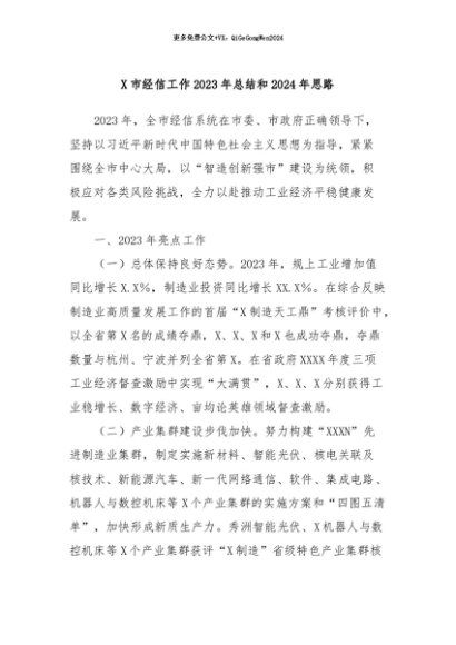/ 【七哥公文】2024年:X市经信工作2023年总结和2024年思路+更多免费公文+VX:QiGeGongWen2024