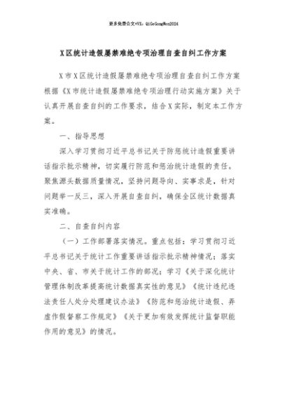 【七哥公文】2024年:X区统计造假屡禁难绝专项治理自查自纠工作方案+更多免费公文+VX:QiGeGongWen2024