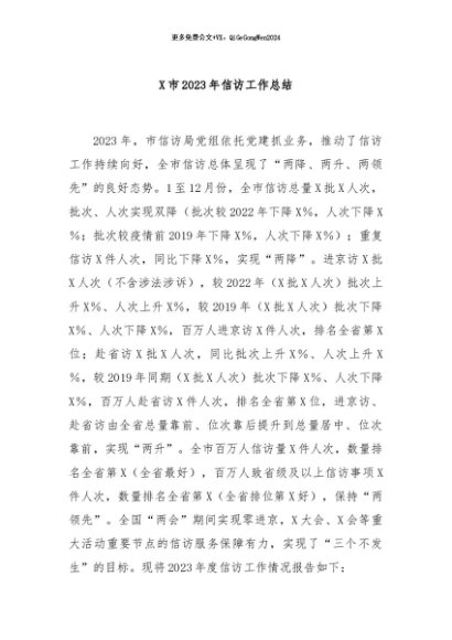 / 【七哥公文】2024年:X市2023年信访工作总结+更多免费公文+VX:QiGeGongWen2024