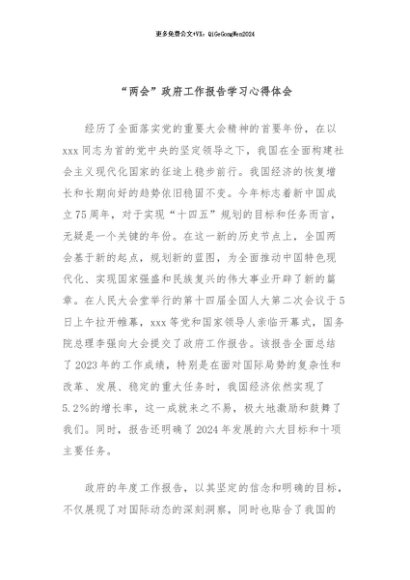 / 【七哥公文】2024年:“两会”政府工作报告学习心得体会+更多免费公文+VX:QiGeGongWen2024