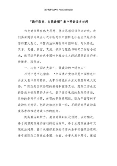 / 【七哥公文】2024年:“践行宗旨、为民造福”集中研讨发言材料+更多免费公文+VX:QiGeGongWen2024