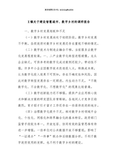 / 【七哥公文】2024年:X镇关于建设智慧城市、数字乡村的调研报告+更多免费公文+VX:QiGeGongWen2024