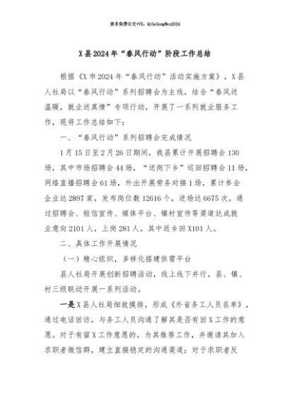 / 【七哥公文】2024年:X县2024年“春风行动”阶段工作总结+更多免费公文+VX:QiGeGongWen2024