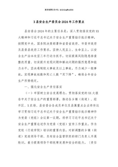 / 【七哥公文】2024年:X县安全生产委员会2024年工作要点+更多免费公文+VX:QiGeGongWen2024
