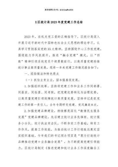 / 【七哥公文】2024年:X区统计局2023年度党建工作总结+更多免费公文+VX:QiGeGongWen2024
