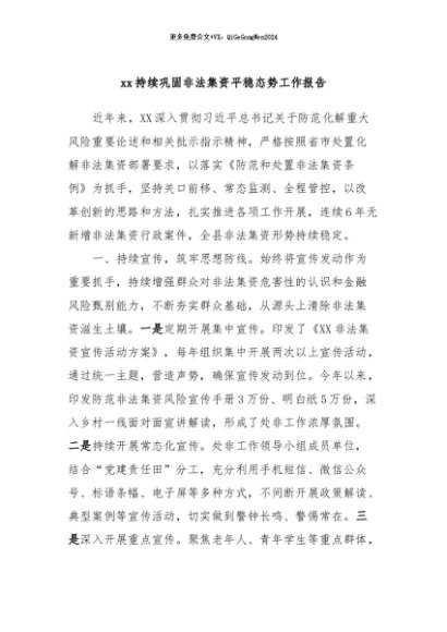 / 【七哥公文】2024年:xx持续巩固非法集资平稳态势工作报告+更多免费公文+VX:QiGeGongWen2024