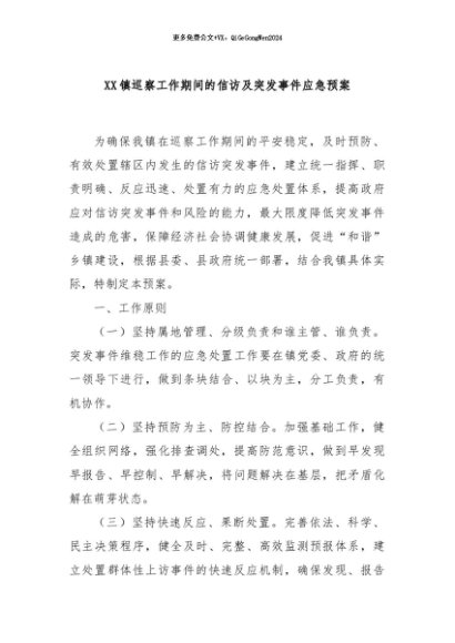 【七哥公文】2024年:XX镇巡察工作期间的信访及突发事件应急预案+更多免费公文+VX:QiGeGongWen2024