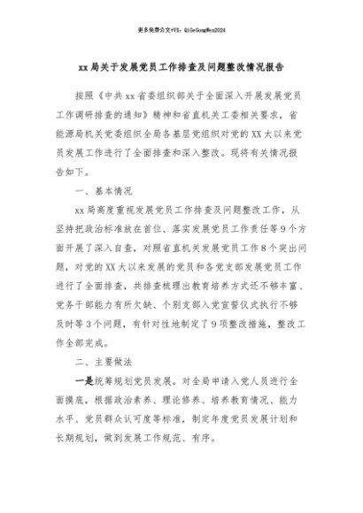 / 【七哥公文】2024年:xx局关于发展党员工作排查及问题整改情况报告+更多免费公文+VX:QiGeGongWen2024