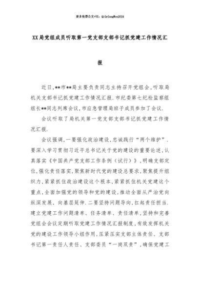 【七哥公文】2024年:XX局党组成员听取第一党支部支部书记抓党建工作情况汇报+更多免费公文+VX:QiGeGongWen2024