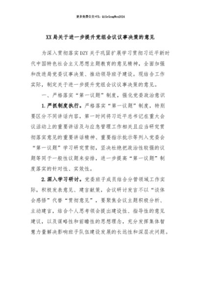 / 【七哥公文】2024年:XX局关于进一步提升党组会议议事决策的意见+更多免费公文+VX:QiGeGongWen2024