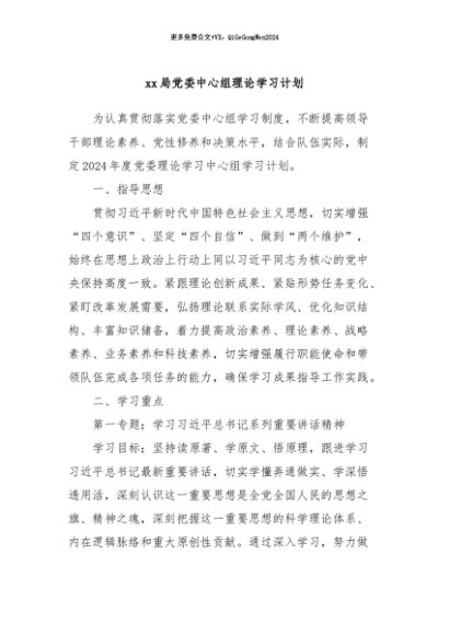/ 【七哥公文】2024年:xx局党委中心组理论学习计划+更多免费公文+VX:QiGeGongWen2024