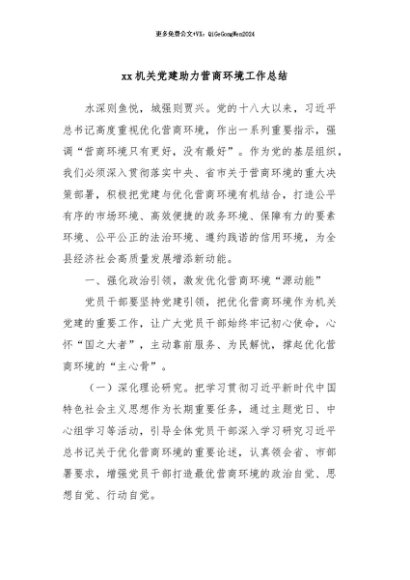 / 【七哥公文】2024年:xx机关党建助力营商环境工作总结+更多免费公文+VX:QiGeGongWen2024