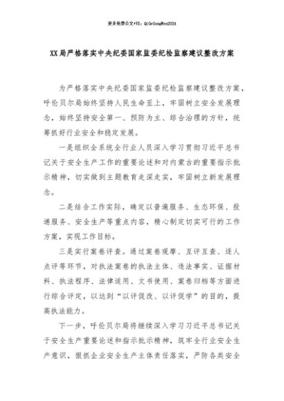 【七哥公文】2024年:XX局严格落实中央纪委国家监委纪检监察建议整改方案+更多免费公文+VX:QiGeGongWen2024