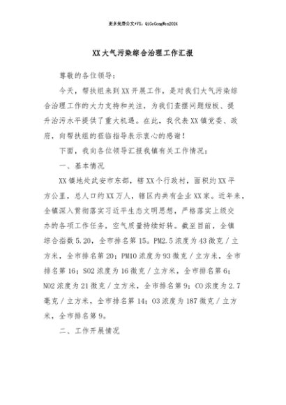 / 【七哥公文】2024年:XX大气污染综合治理工作汇报+更多免费公文+VX:QiGeGongWen2024