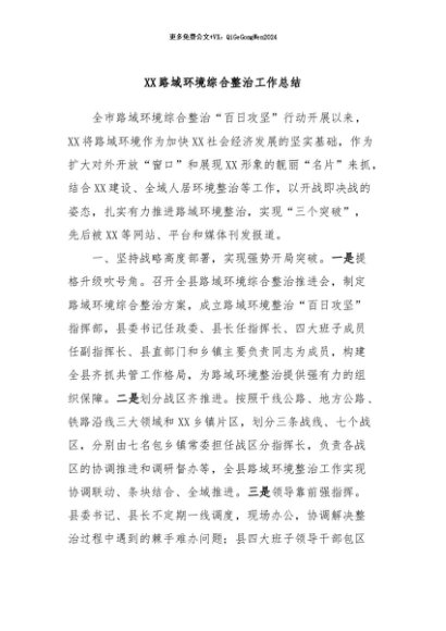 【七哥公文】2024年:XX路域环境综合整治工作总结+更多免费公文+VX:QiGeGongWen2024