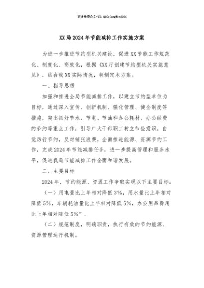 【七哥公文】2024年:XX局2024年节能减排工作实施方案+更多免费公文+VX:QiGeGongWen2024